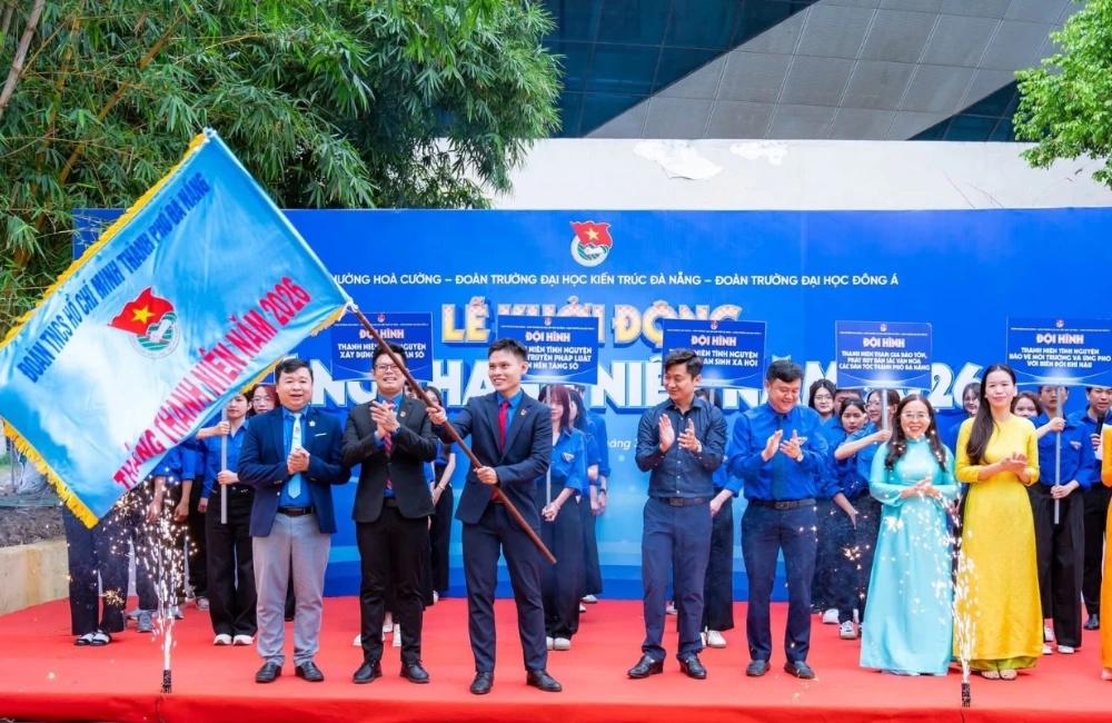 Joining the vibrant atmosphere of young people nationwide in response to Youth Month 2026 and celebrating the 95th anniversary of the Ho Chi Minh Communist Youth Union (March 26, 1931 – March 26, 2026), representatives of Dai Viet Da Nang College attended the Youth Month launching ceremony organized by the Hoa Cuong Ward Youth Union at Nai Nam Communal House.